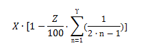 - Diese Formel ist leider nur eine Näherung. In der Praxis wird der Prozentsatz auf die Minibeben heruntergerechnet, die einzeln ausgeführt werden und dadurch auch einzelne Rundungsfehler mit sich bringen.